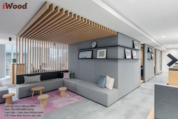 ● Ốp cột, khung trần nổi, làm thanh lam phân chia không gian mở