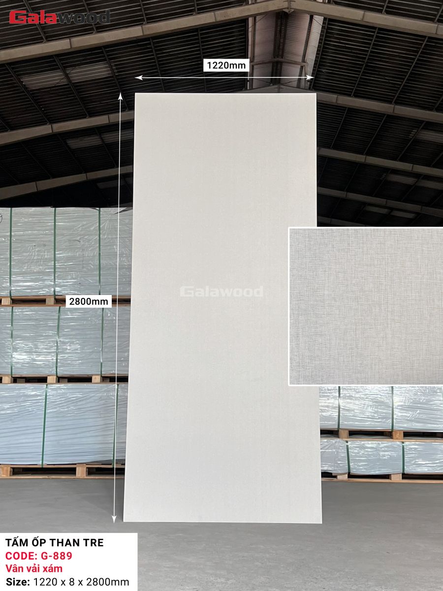 Galawood G-889 là mẫu tấm ốp than tre cao cấp mang họa tiết vân vải xám hiện đại, phù hợp với xu hướng thiết kế nội thất tối giản, thanh lịch. Được sản xuất từ nguyên liệu than tre tự nhiên, sản phẩm không chỉ thân thiện môi trường mà còn giúp thanh lọc không khí, chống ẩm mốc, nâng cao chất lượng sống.