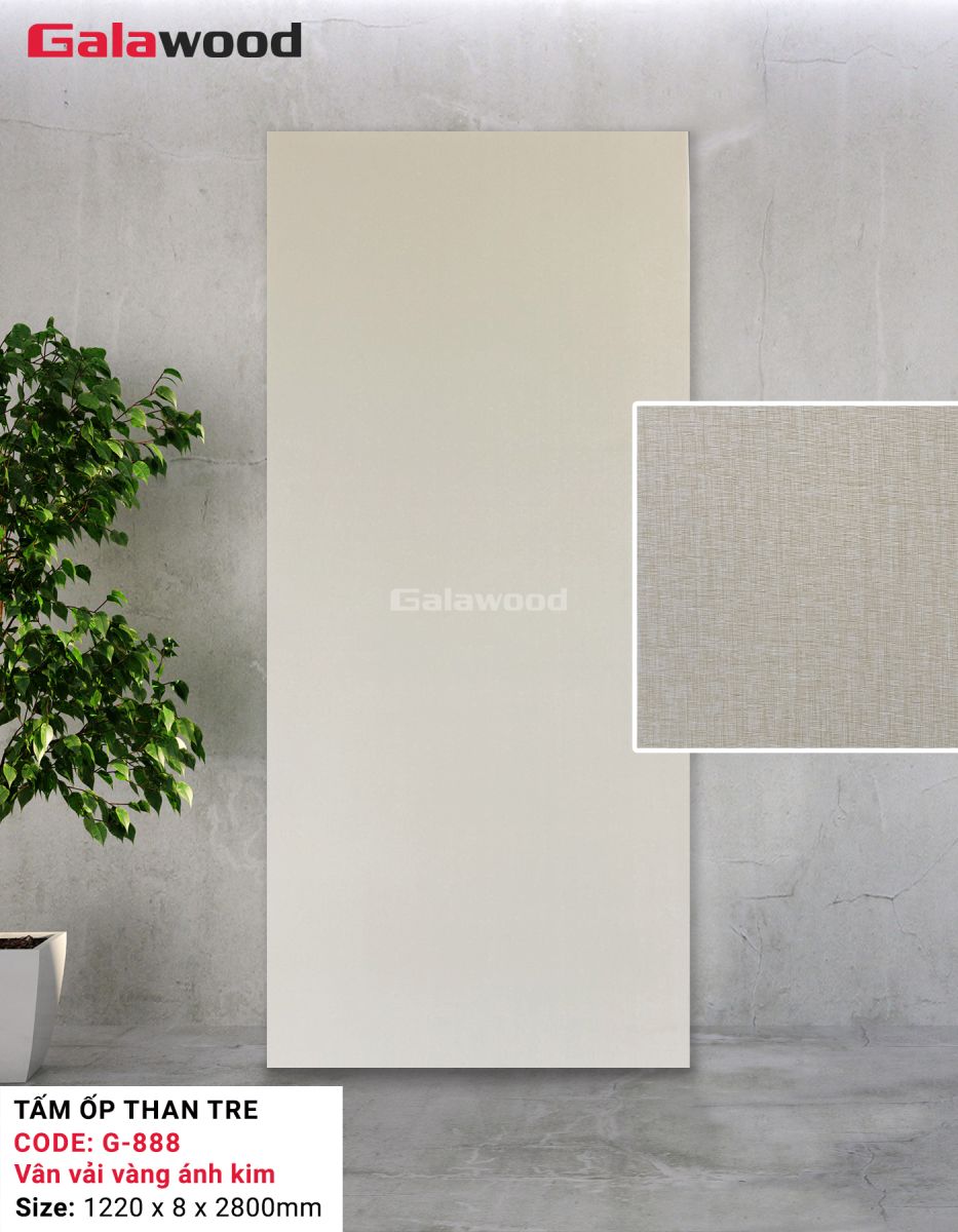 Tấm ốp than tre Galawood G-888 mang thiết kế vân vải vàng ánh kim sang trọng, tạo nên điểm nhấn thanh lịch cho không gian nội thất. Với chất liệu than tre ép siêu bền và khả năng kháng khuẩn tự nhiên, đây là lựa chọn lý tưởng cho những ai đề cao tính thẩm mỹ và an toàn sức khỏe.
