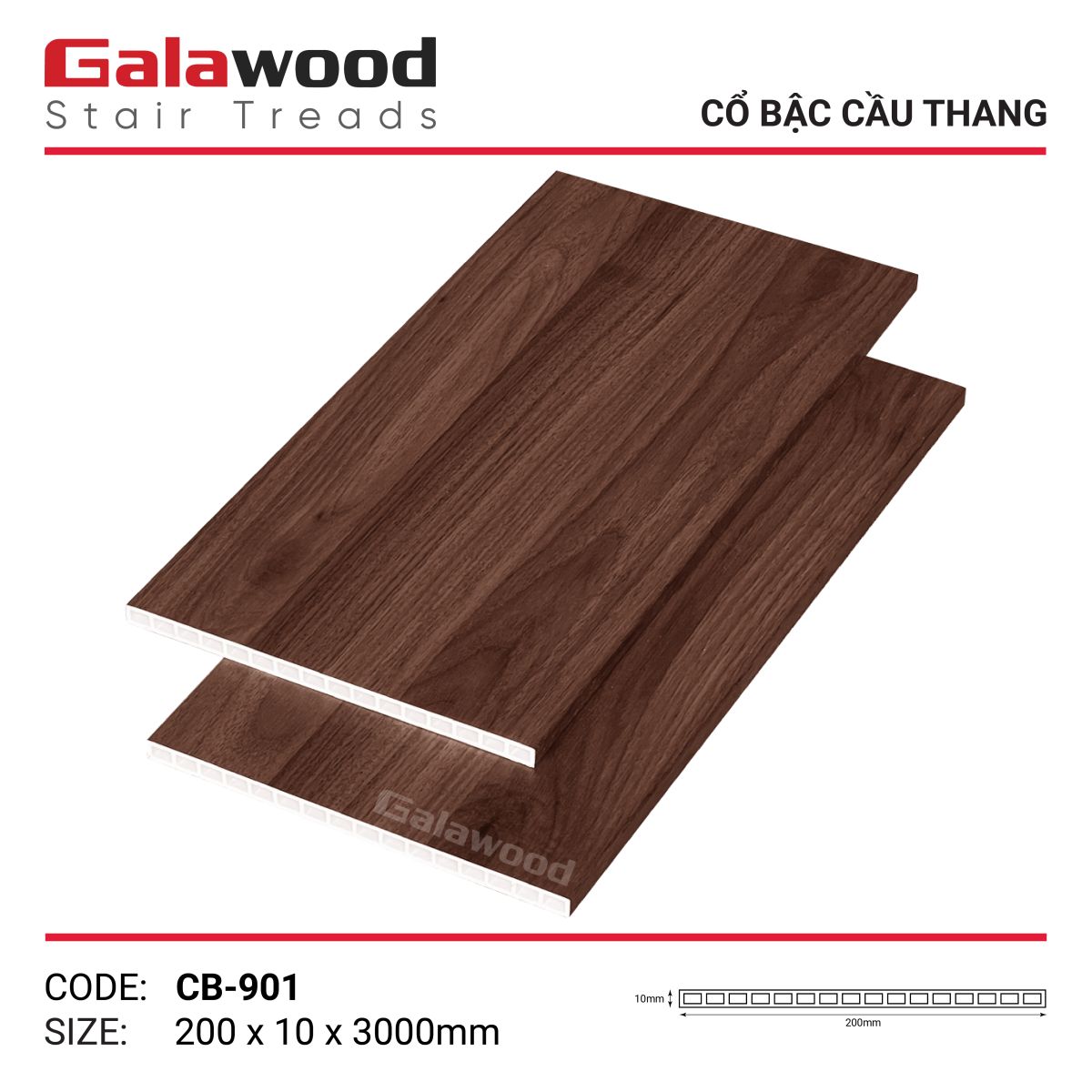 CỔ BẬC CẦU THANG GỖ NHỰA GALAWOOD CB-901 (200X10X3000MM)
