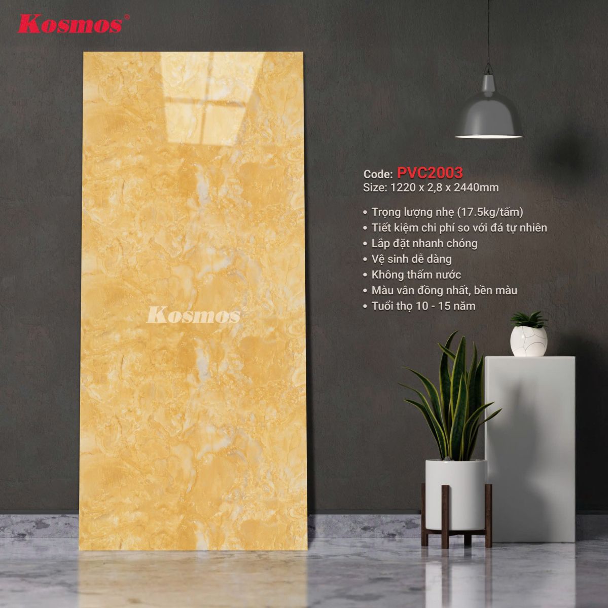 ✅ ƯU ĐIỂM CỦA TẤM PVC VÂN ĐÁ KOSMOS PVC2003